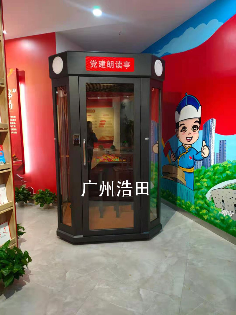 中國紅黨建學(xué)習(xí)朗讀亭,里面設(shè)有完整的觸摸屏點(diǎn)播朗讀系統(tǒng)、專業(yè)的朗讀設(shè)備、豐富的朗讀資源和舒適的朗讀環(huán)境。朗讀亭內(nèi)的屏幕首頁有詩歌、文學(xué)、紅色經(jīng)典、英文名著、少兒讀物等萬種可供選擇的朗讀內(nèi)容。讀者只需掃描屏幕二維碼,按操作步驟進(jìn)入系統(tǒng),選擇閱讀文件和背景音樂,便可開始朗讀。