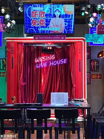 舞臺版全民K歌房的亮點是一個復古式的開放舞臺,所有顧客都可以掃碼登臺演唱,霓虹燈將現場氣氛渲染得較為濃烈,較高的演唱水平引得臺下爆滿的觀眾連連拍手叫好。